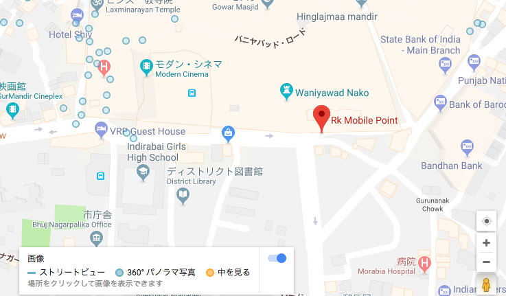 ブージのメインロードの、このモバイルショップの前の三角コーナー