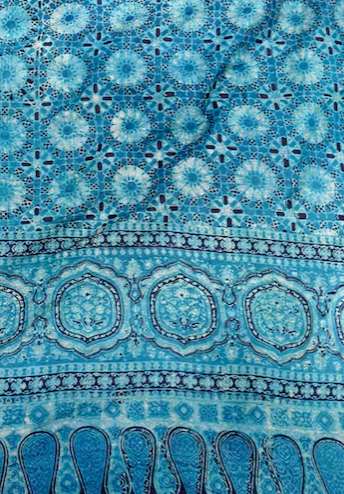 アジュラックブロックプリントは、ほぼ天然染料で染められていて、独特の幾何学模様が特徴的です。