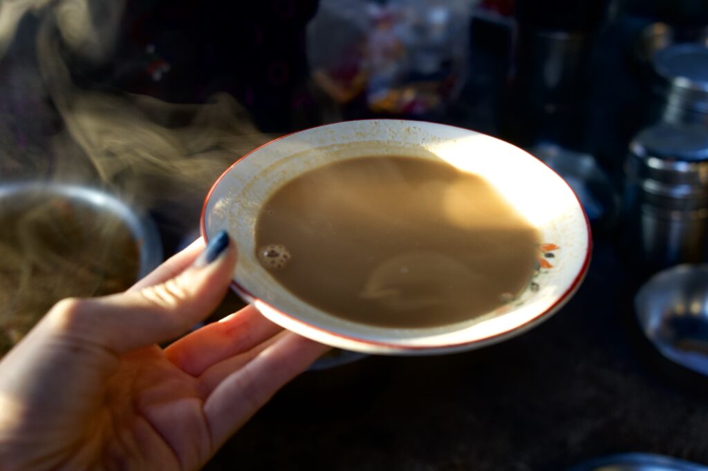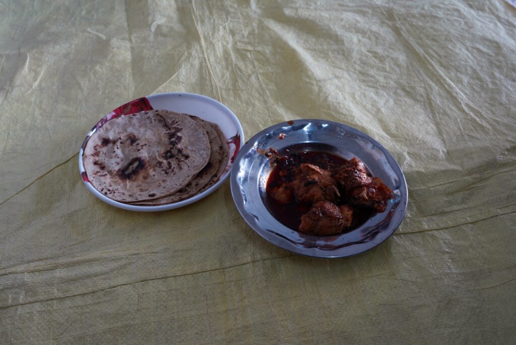 首元の日焼けが火傷のように熱く、体も少し熱っぽい。このまま長くいるのは、体力的に少し危なそうだなと感じ、頃合いを見て帰ることに。挨拶をして回ると、昼ごはんを食べていけ、今日は魚だぞ、とお誘いいただきました。みんなで食べるのかと思いきや、私1人分だけが出てきて、他の人たちは別室へ。こうした距離感にも、少しずつ慣れてきました。魚のカレーはかなり辛く、私は割と辛さには慣れている方ですが、それでも甘いチャイが飲みたくなるほど。子供たちも、これを食べてるんだなぁ。