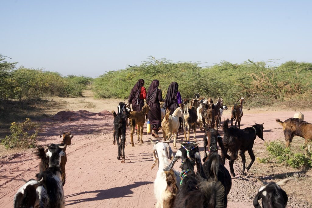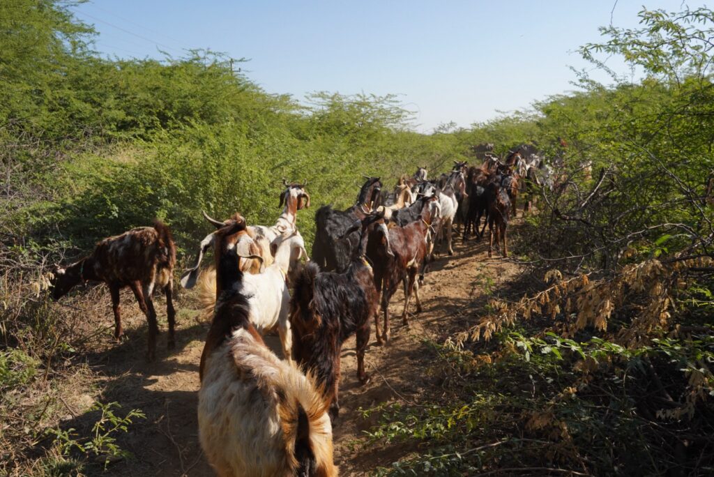 10時頃、山羊の放牧へ出発しました。群れを連れて、明朝に歩いた道を戻り、アジュラクプールの中心を抜け、LLDCの横を通ってジャングルへ入ります。前々から不思議でしたが、少人数でこれだけの数の山羊を統制できている。山羊たちも草を食べたり、少し寄り道をしたりしながら、自然と集団を保っています。