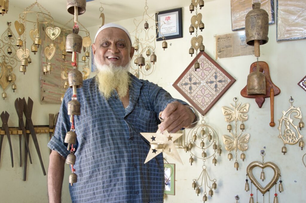 制作以外でも、印象に残る出来事がありました。銅ベルの共同制作を予定していた工房に何度か通い、デザインやプロセスの共有まで進んでいましたが、突然、連絡を取っていた若い職人さんと音信不通になりました。後に、工房の中心的存在だった職人さんが亡くなったことを知りました。澄んだベルの音が鳴り響く工房で、ニカッと笑って出迎えてくれる、素敵なおじいちゃんでした。