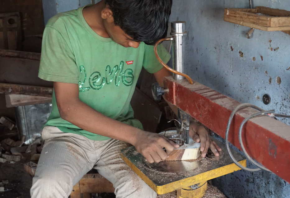 サンガネールには、ブロックプリント用の木版を彫っている職人さんが沢山いらっしゃいまして、この度も、「彫ってみたいのですが、、、」と直談判して回りました